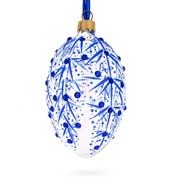 Crafted from German glass and detailed with Italian paint. This egg shaped ornament is hand-painted with blue branches comes in a window display gift box. Ornament is brand new and made in the Ukraine.